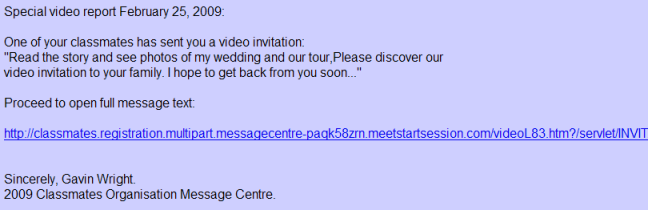 Classmates Malicious Video Link Spam