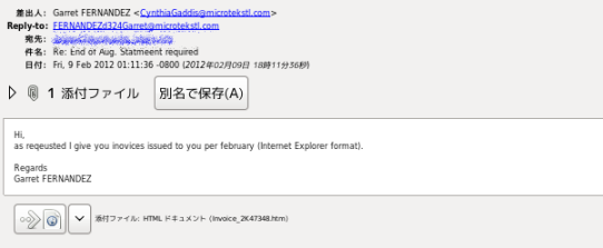 スクリプトが仕込まれたhtmlファイルが添付されているタイプ。
