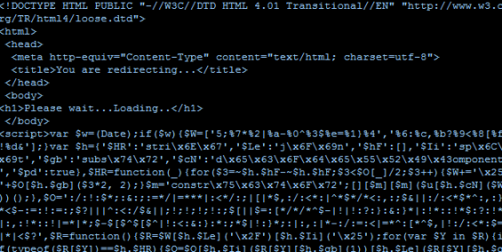 リダイレクト先に設置されてそうなスクリプトファイルがそのまま添付されています。(アンチウィルスの検出率は低い)