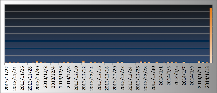 で、年末年始にちょっと増えただけだと思っていたのですが、本日(1/14)急増してます。。。