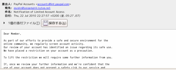 パッと見、他と同じマルウェア添付かリダイレクトものかと思いましたが