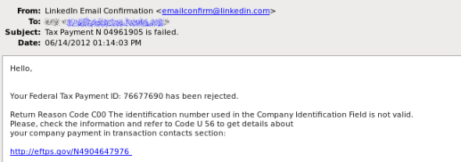 時期にあわせて定期的に流行るTax Payment Failed系。