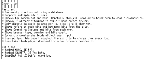 インジェクションでリダイレクトされる攻撃サイトに仕掛けられているスクリプトですが、exploit packとよばれるツールキットによって作成されていることが多いようです。それぞれのpackに添付されているコード、生成されるコードにぴったり一致するもの、一部だけ利用されているものなど明確にわかるサイトも多々あります。