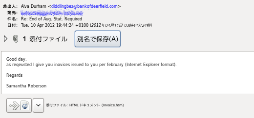 invoice.htmというスクリプトが仕込まれたファイルが添付されてきます。